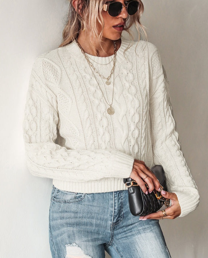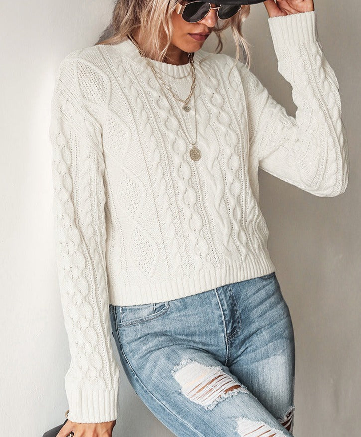 Deze witte trui heeft lange mouwen, een ronde hals en een regular pasvorm. De trui is voorzien van een gebreid patroon. Draag de trui met een jeans en jouw comfy outfit is compleet.