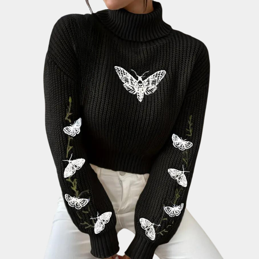 Omarm de charme en gratie van het vlindermotief en laat deze trui een onmisbaar item zijn in je herfst- en wintercollectie.