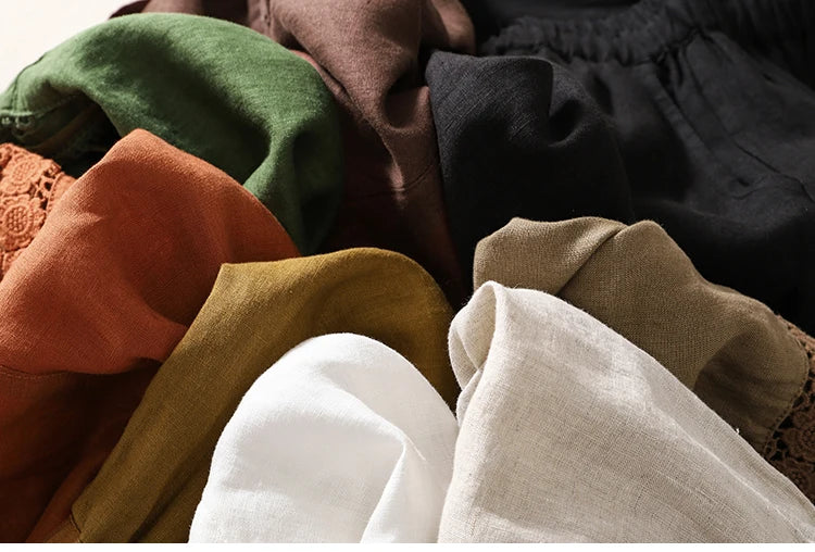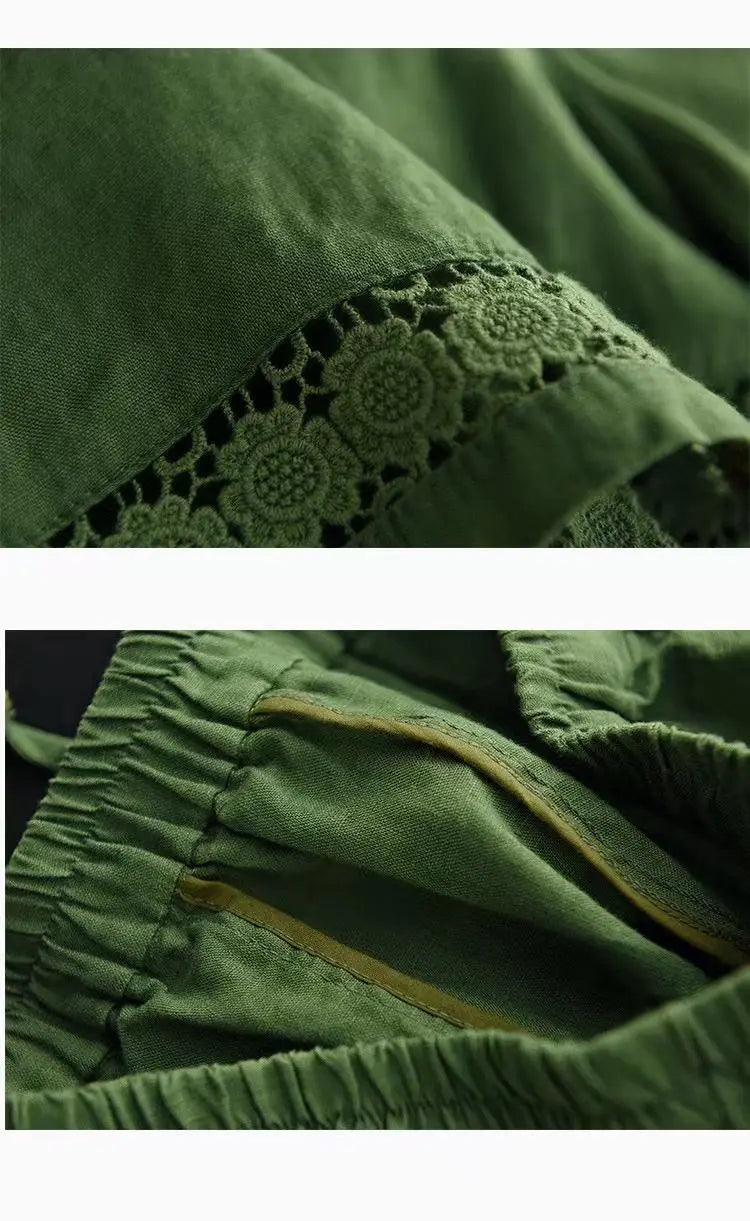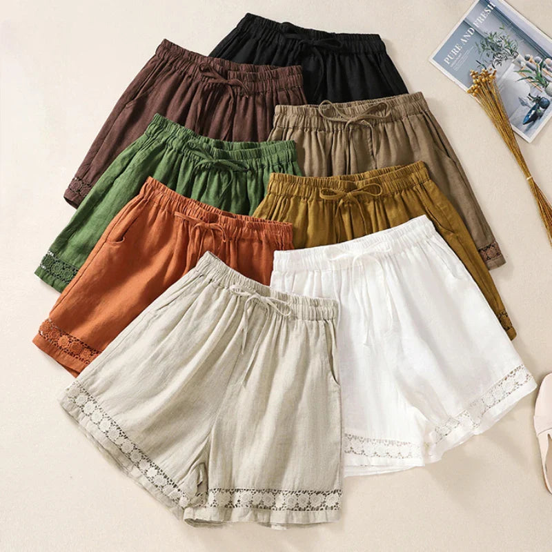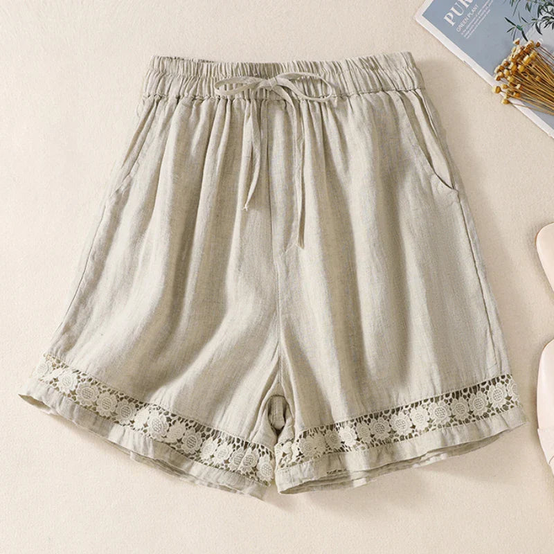 Zomer Bloemen Kanten Katoen Linnen Korte Broek - Dannie