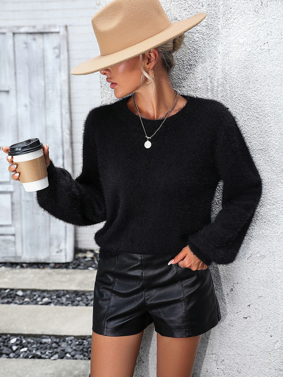 Deze trui heeft lange mouwen, een ronde hals en kanten details op de rug. De trui heeft een oversized fit en is gemaakt van een zachte, comfortabele stof.